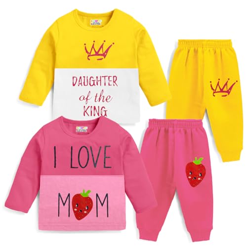 Kuchipoo Baby Girl Regular Fit Cotton T-Shirts and Pyjamas Set Prices